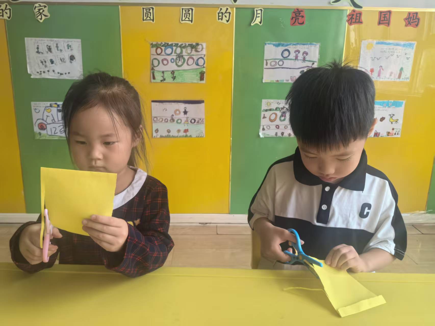 孩子们为中秋节绘制的美工作品,共创浓浓的节日氛围,亲身感受传统节日的意蕴与魅力。