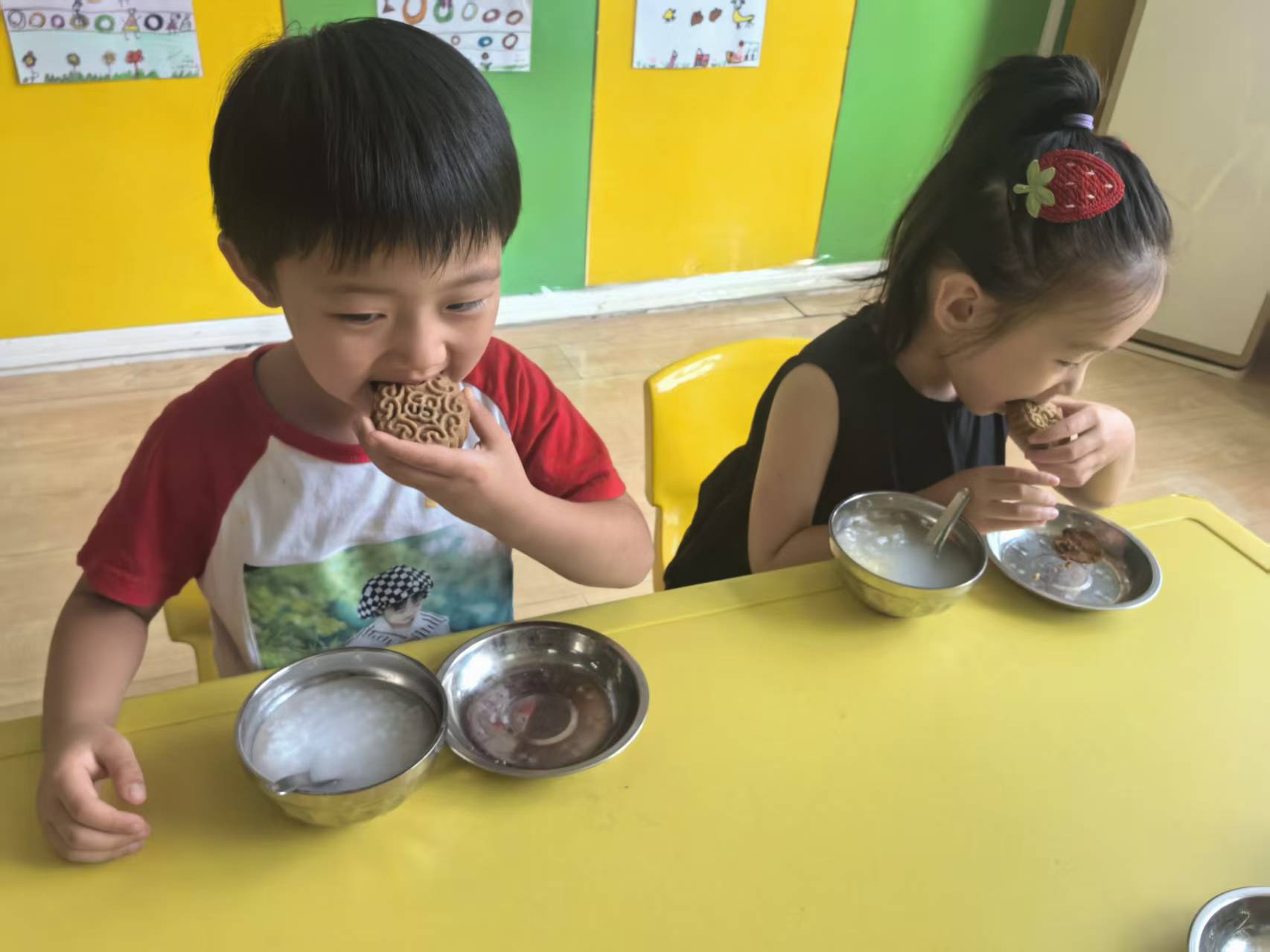 “小饼如嚼月,中有酥和饴。”月饼是中秋团圆不可缺少的美食,孩子们纷纷化身为“小小品鉴师”,大快朵颐地品尝着月饼,感受着浓浓的中秋氛围。