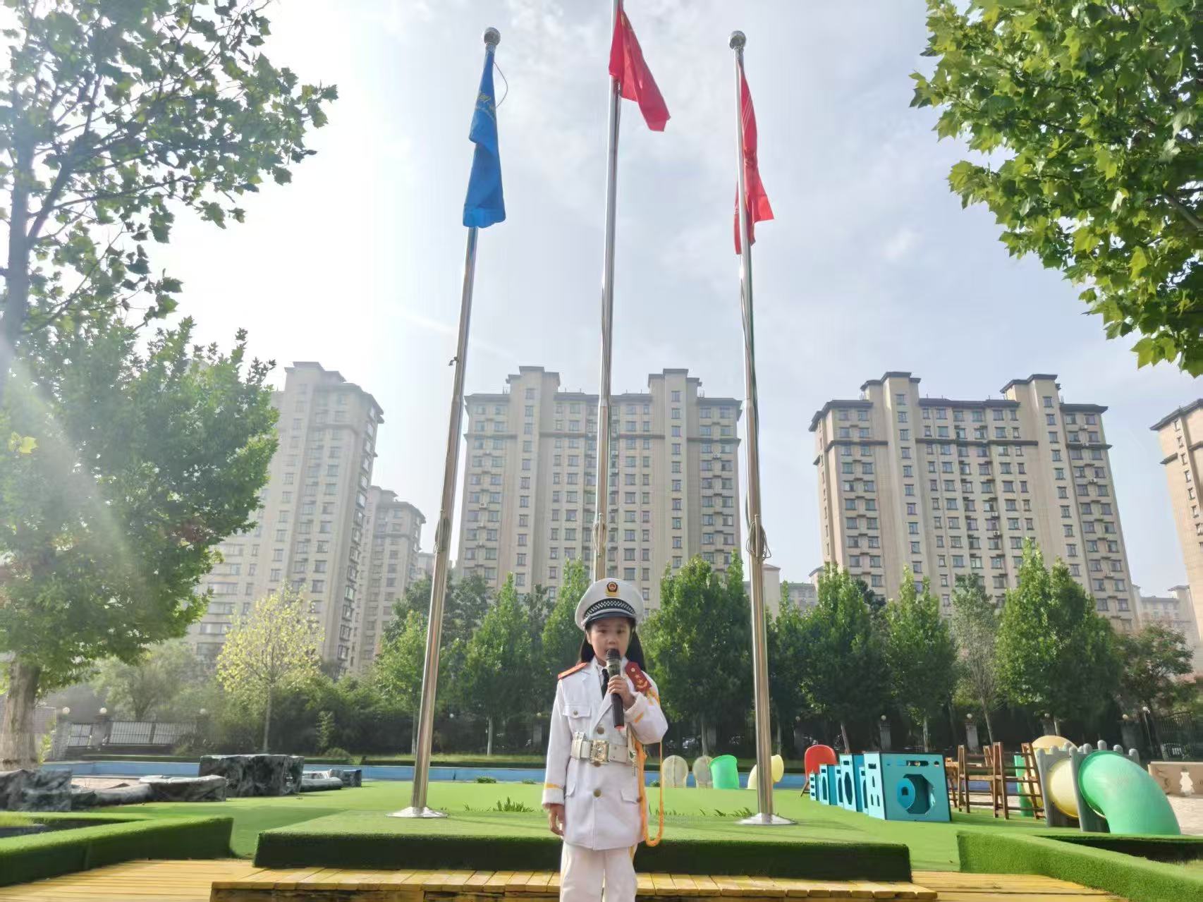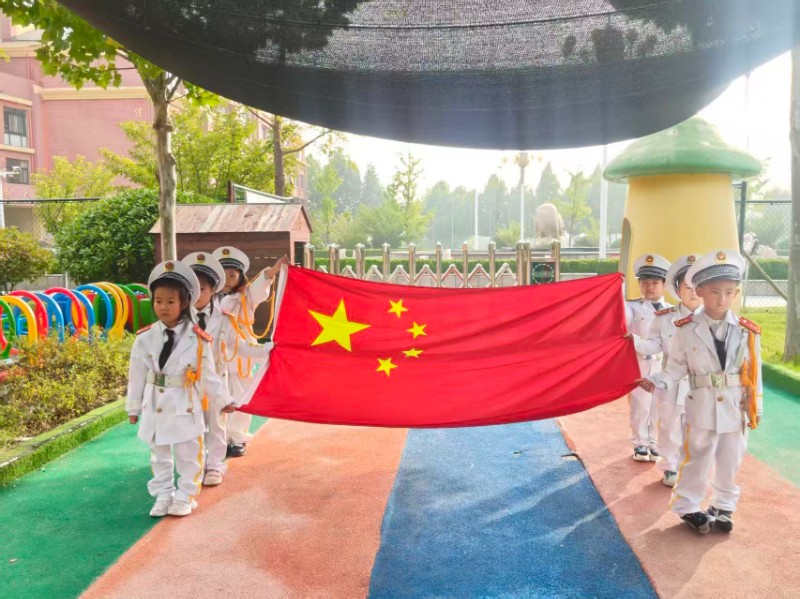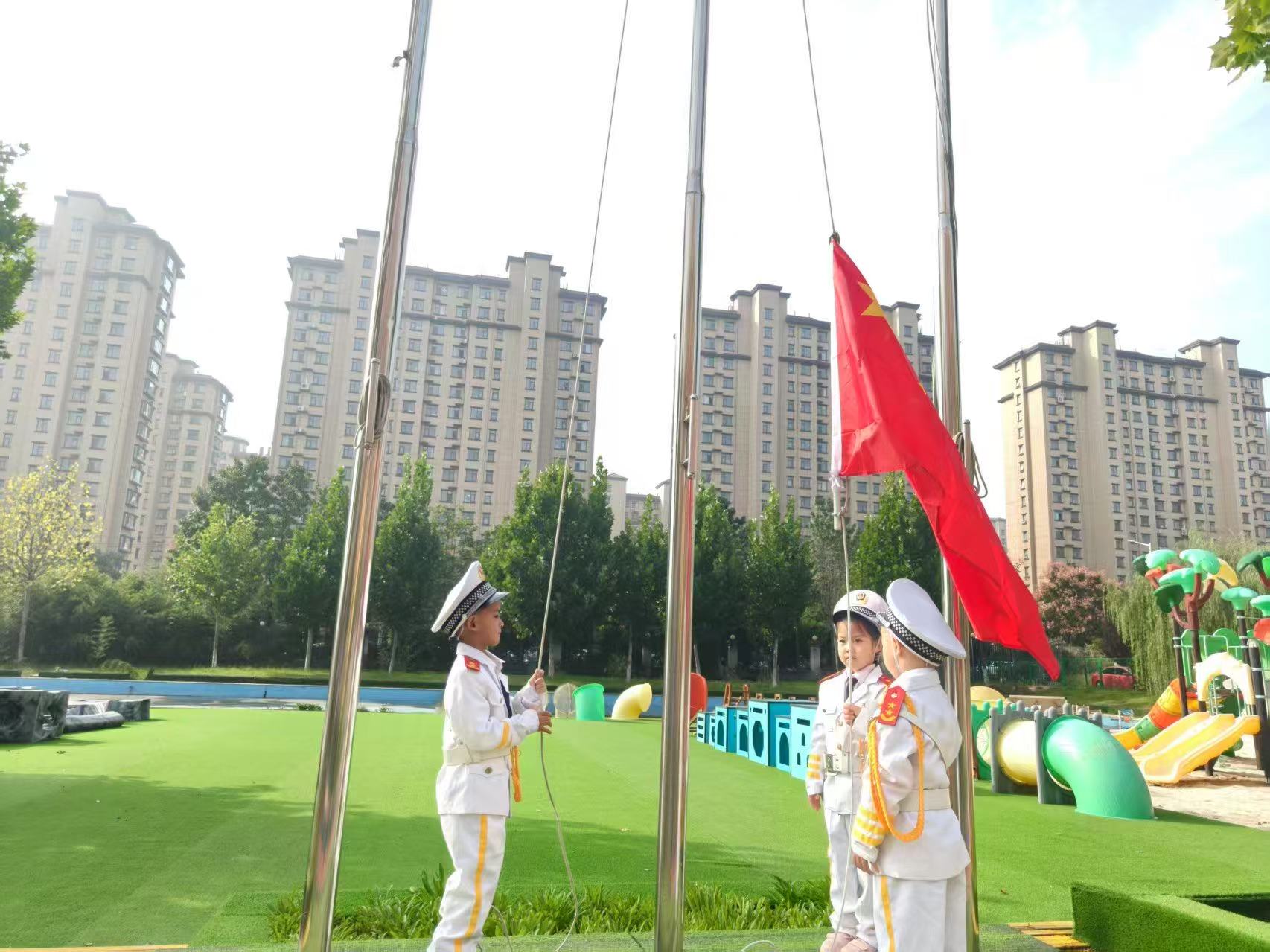 莱西国开美之鸥幼儿园五星红旗迎风飘扬