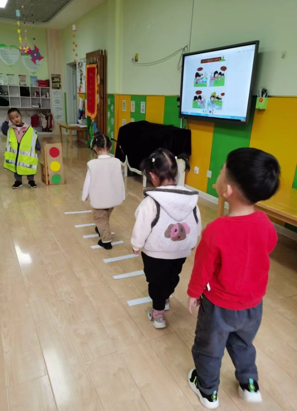 交通安全教育应该从小抓起,让孩子从小学习交通安全知识,从小就把安全意识放在心中,养成良好的文明交通习惯。小班老师让孩子们观察斑马线,了解红绿灯的作用,通过游戏“我会过马路”让孩子们知道过马路的注意事项。