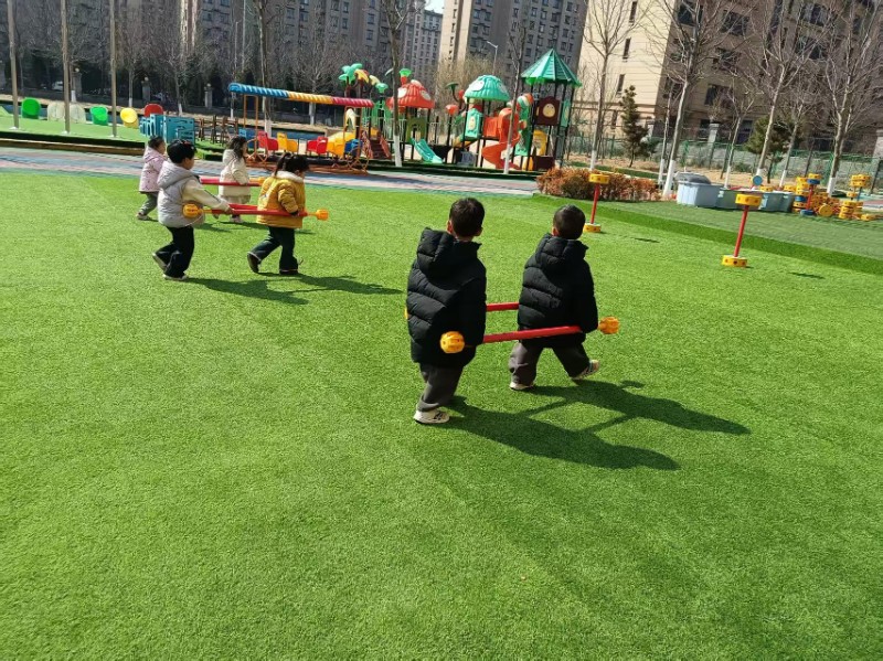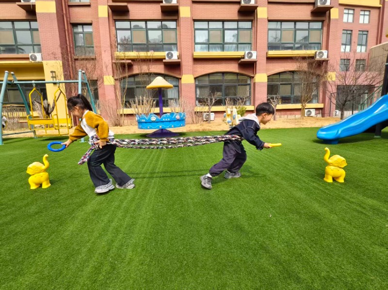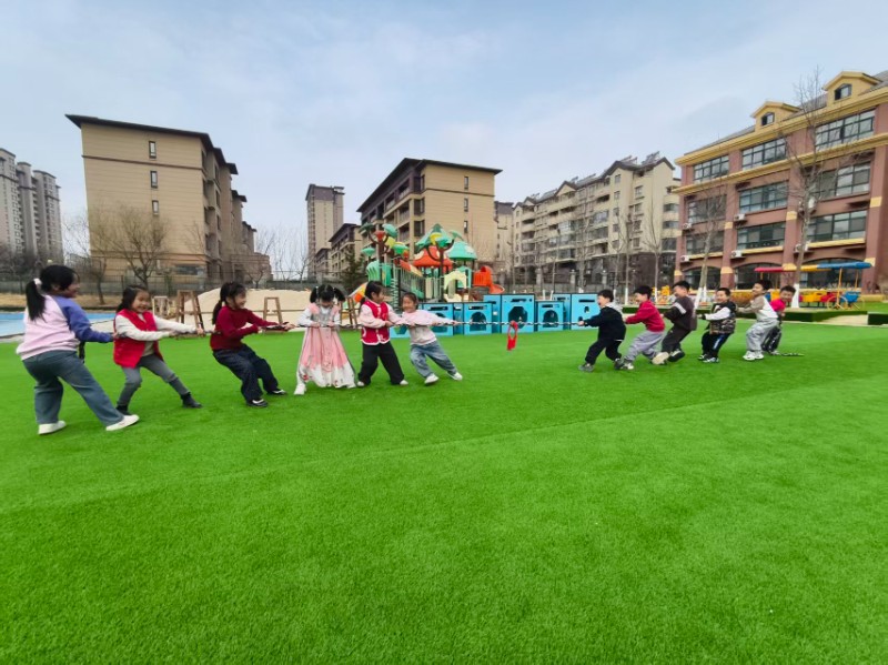 春日的暖阳下,孩子们欢快地游戏,仿佛一条条小龙在春天的画卷中穿梭。每一步都带着童年的纯真与喜悦。